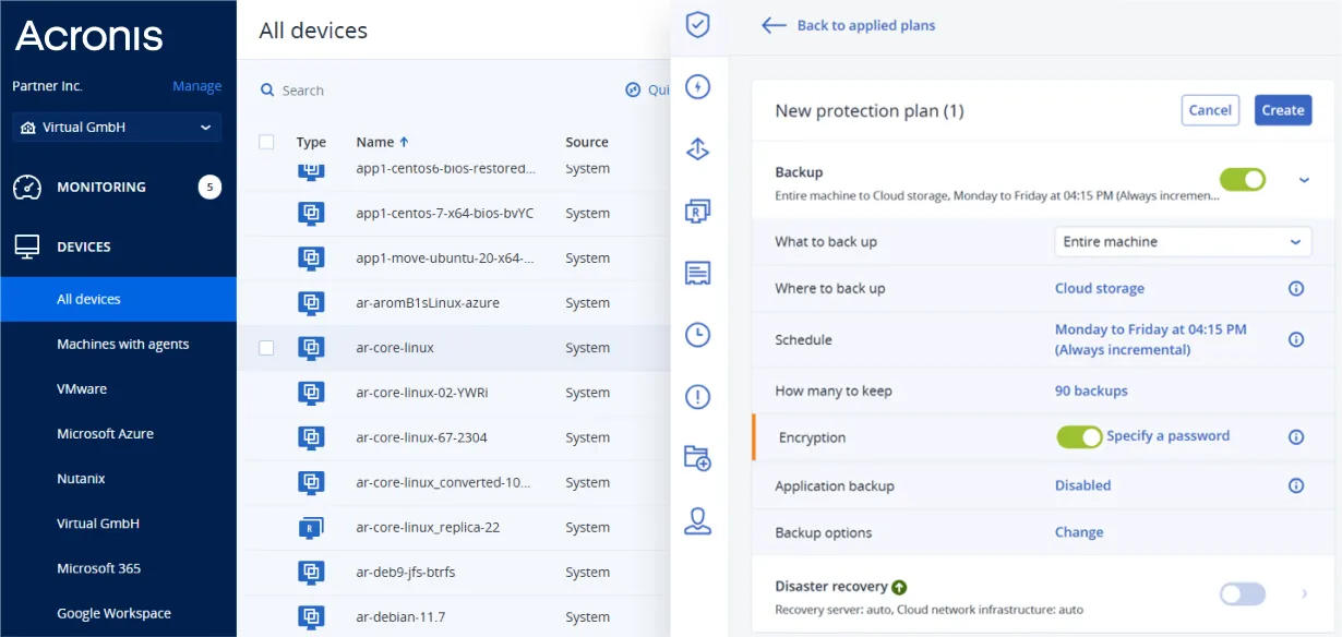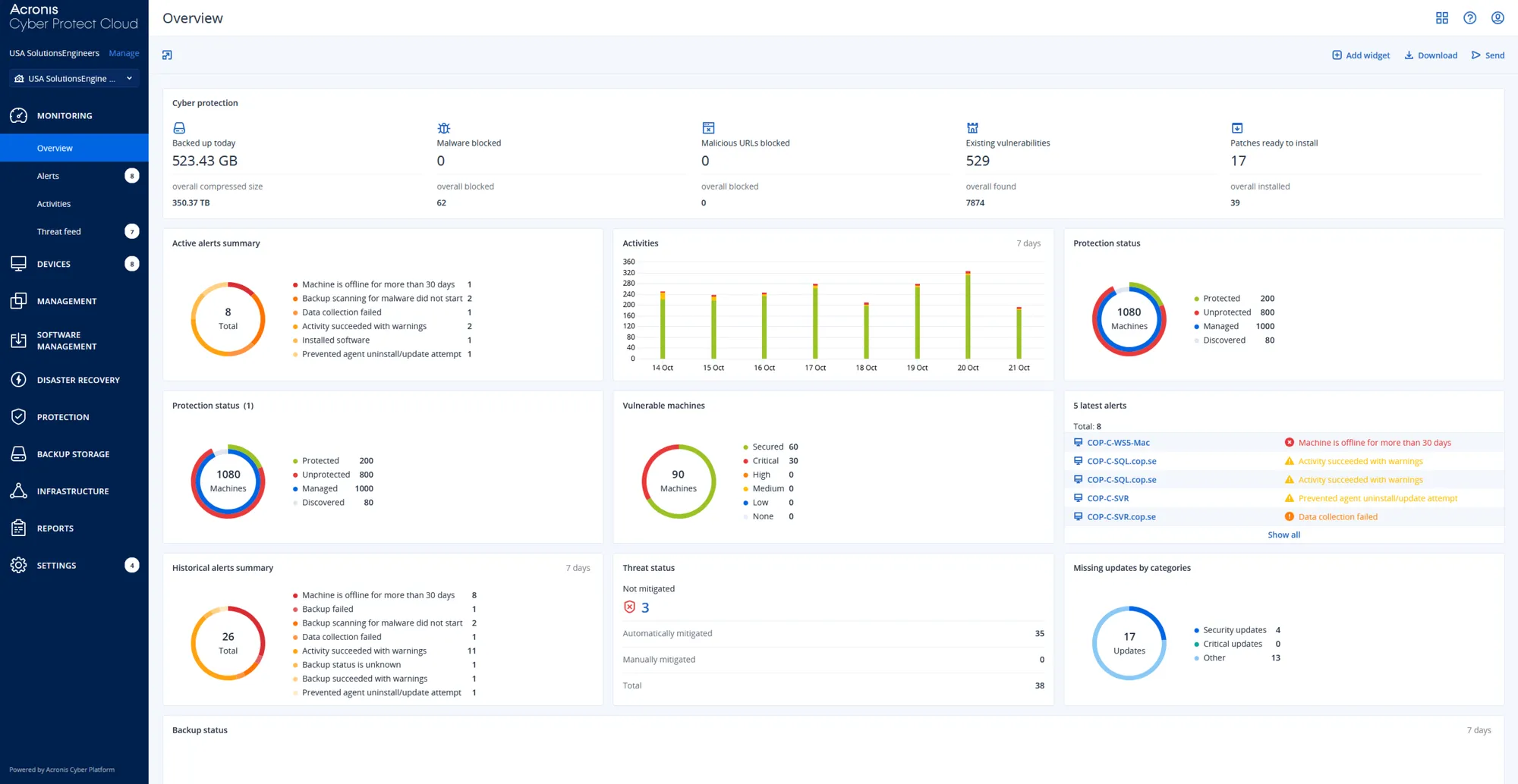 Cyber resilient backup for physical, virtual, cloud, and mobile environments. Tailor to your infrastructure and compliance needs with multiple storage options and flexible backup configurations. With natively integrated endpoint security and rapid, verified recovery, Acronis keeps your data safe and your workforce productive without interruption.